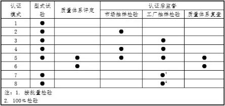 國際上通用的認證模式為八種,具體可歸納為下表: